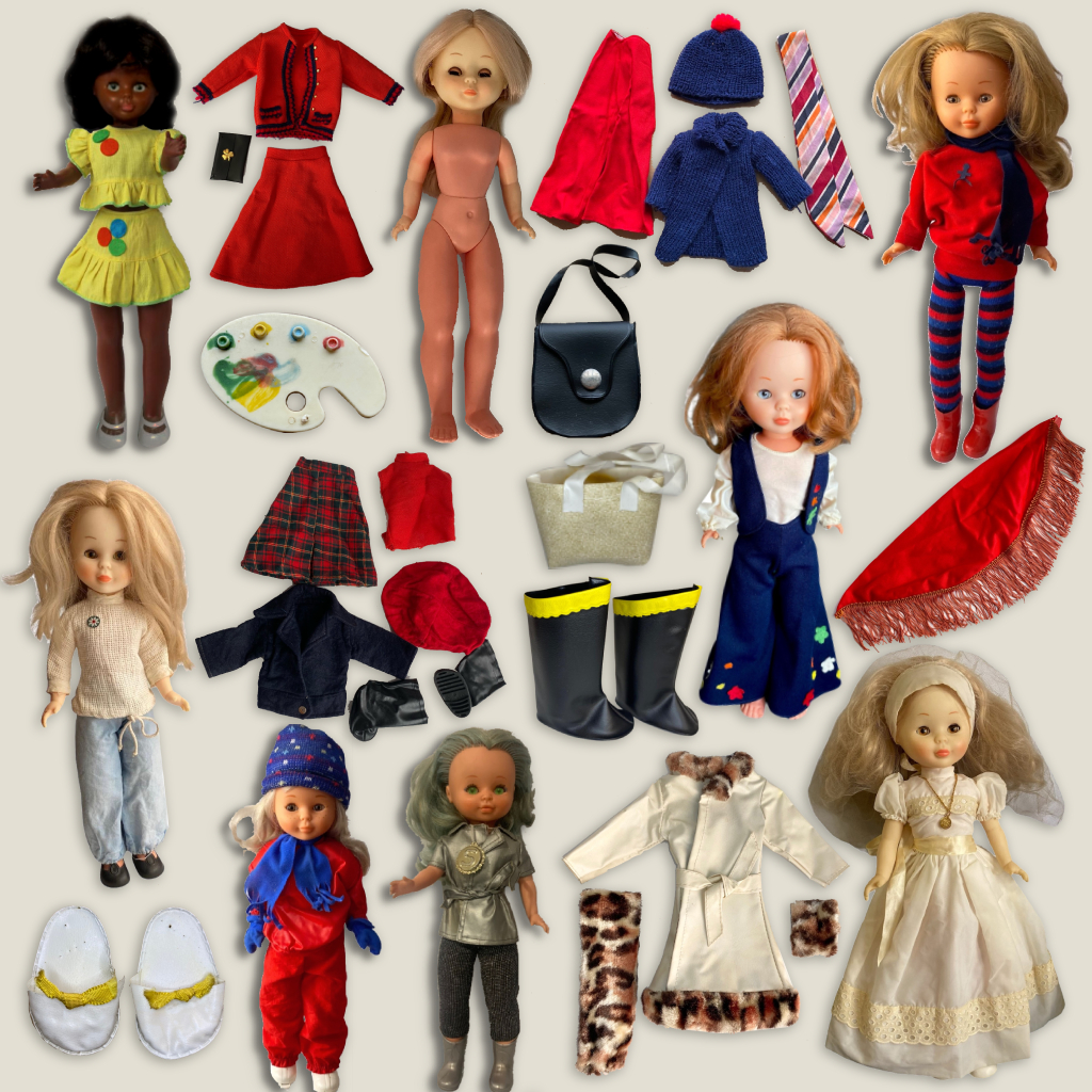 – Otras muñecas de Famosa, Vicma, Mattel, Toyse, Jesmar, Novo-Gama, etc.: Mari pepa, Romina, Barbie, Soraya, Carol, Pupitas, Sory, etc.