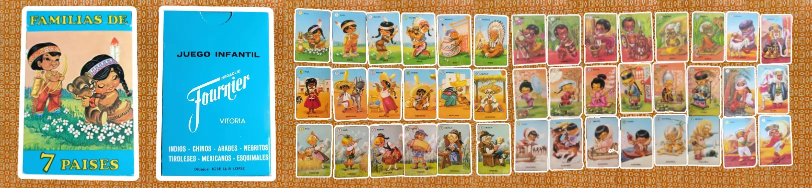 Cada grupo representaba un rincón del mundo —esquimales, árabes, indios, tiroleses…— y cada carta mostraba sus trajes, sus casas y sus costumbres. En muchas casas españolas, esa baraja fue la primera “enciclopedia visual” que un niño tuvo entre las manos.